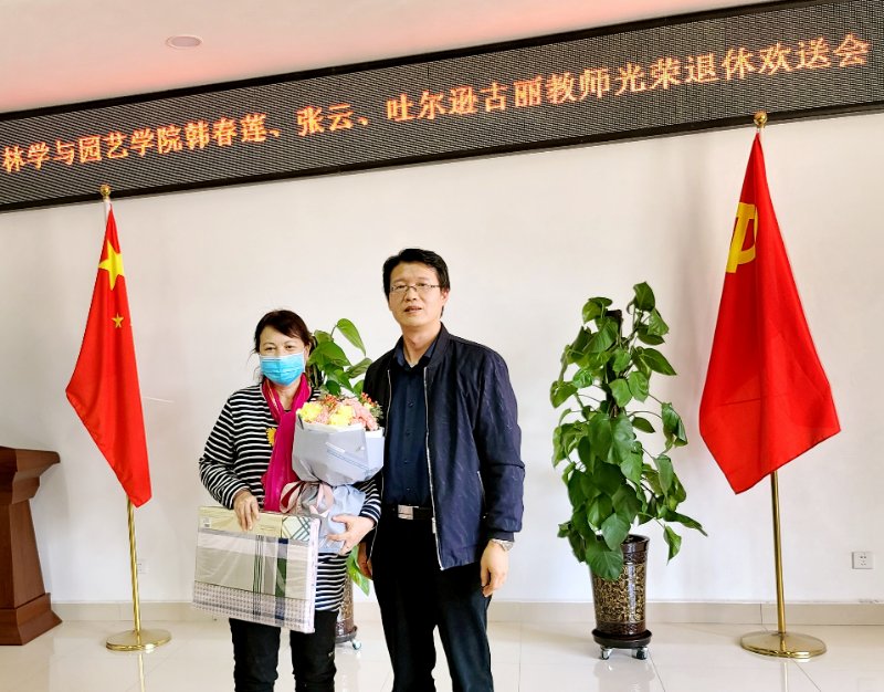 423日下午,林学与园艺学院利用周三下午教职工集中学习的时间,2020年一季度光荣退休教师举办欢送会。学院领导和老师怀着无限崇敬与依依不舍的心情欢送退休的韩春莲、张云和吐尔逊古丽三位老师