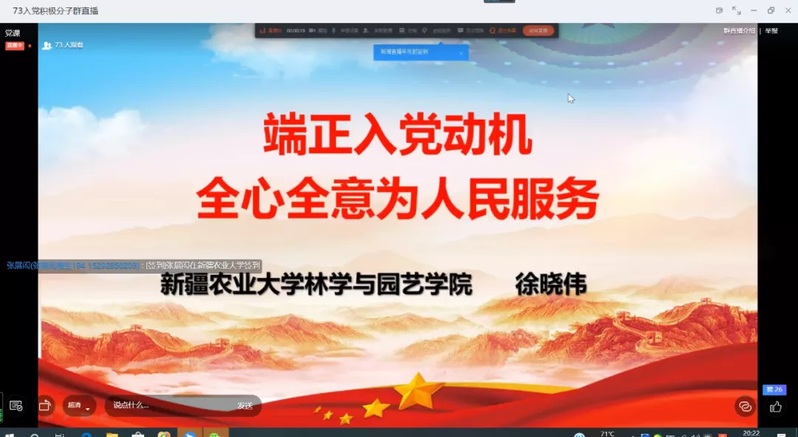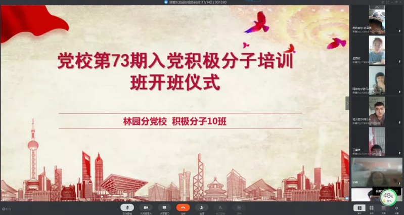 为做好疫情防控期间入党积极分子的培养、教育和考察工作,确保新发展党员质量,5月19日,林园学院分党校线上举行第73期入党积极分子培训班开班仪式,学院党委书记、分党校校长徐晓伟、班主任吴智乐老师以及138名入党积极分子(4名青年教师,134名学生)出席开班仪式。