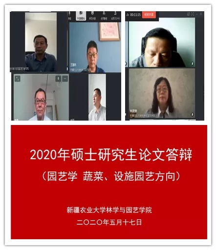 5月17日,园艺学(蔬菜学、设施园艺学方向)及农艺与种业领域(蔬菜方向)研究生学位论文毕业答辩工作在钉钉平台上顺利开展,共有17位硕士研究生参加了此次答辩。答辩委员会主席由新疆农业科学院园艺作物研究所余庆辉研究员担任,委员包括做爱动画 林学与园艺学院园艺系高杰教授、秦勇教授、林辰壹教授、王惠林副教授和新疆农业科学院农作物品种资源研究所宋羽副研究员,姜秀梅老师担任答辩秘书,研究生一年级和二年级的部分学生聆听了答辩。