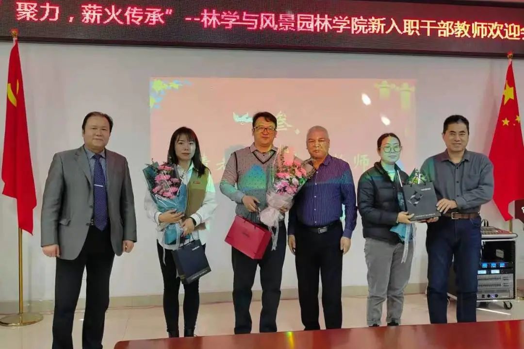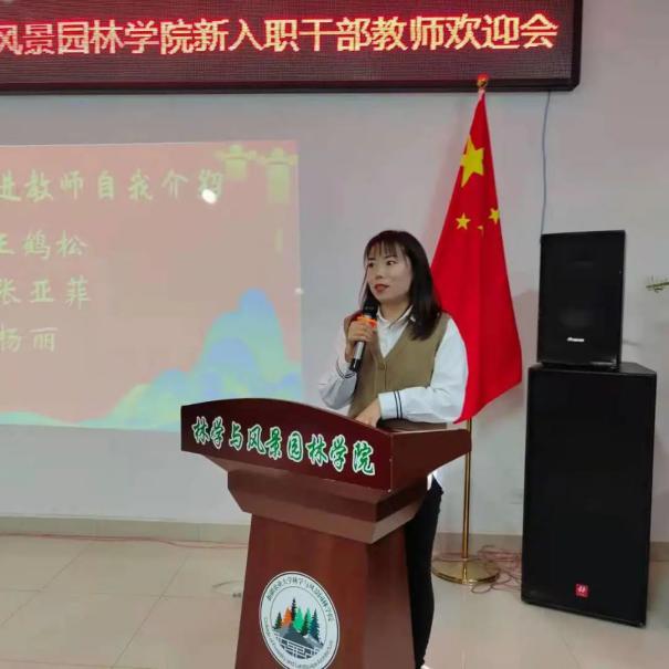 两位新进教师张亚菲和杨丽也分别上台向大家做了自我介绍,她们许下诺言,要不忘教育初心,牢记教育使命,在林园学院这片沃土上施展自己的才华,成为德高业精的好老师。欢迎仪式上,学院老教师为新教师佩戴校徽,送上鲜花和纪念品,祝贺他们正式成为农大教工队伍中的一员。