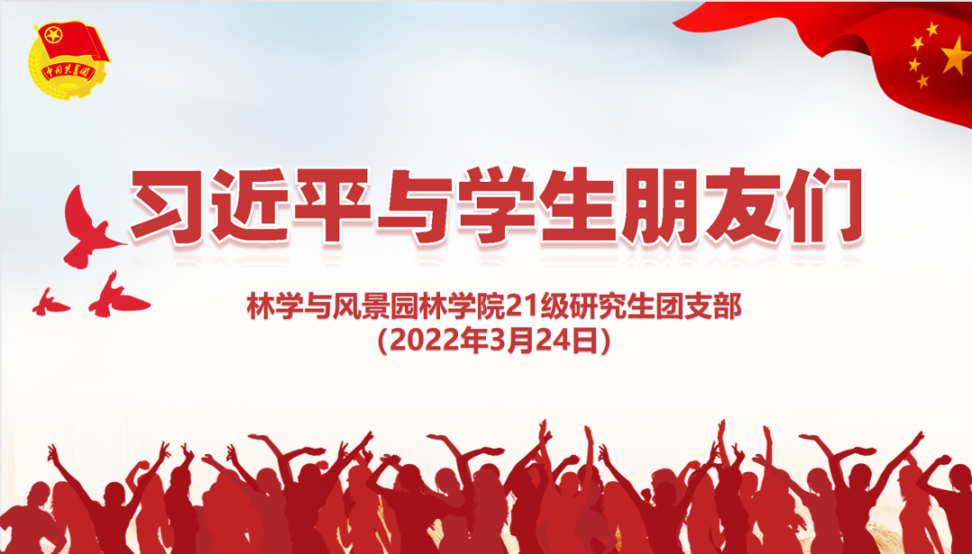 为深入学习贯彻习近平总书记关于青年工作的重要思想,持续强化建党百年激发的爱党爱国爱社会主义热情,引导团员青年自觉坚定听党话、跟党走的青春步伐,让广大青年以实际行动“喜迎二十大、永远跟党走、奋进新征程”,做爱动画 2021级研究生团支部于324日召开了以“习近平与学生朋友们”为主题的团日活动。