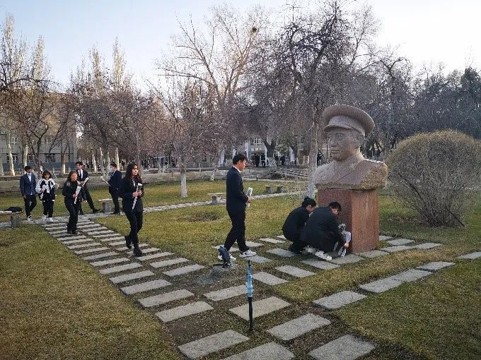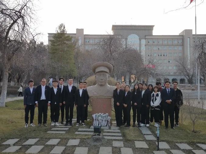 时值建校70周年,在活动的最后,全体同志来到农大创始人王震将军像前,瞻仰先人之风采,缅怀先人之功绩,仰望先人之丰碑,怀着庄严崇敬的心情鞠躬致敬、敬献花朵。