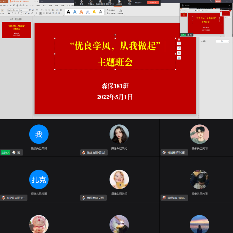 为进一步激发广大学生的学习热情,明确学习目标,促进各班形成“比、学、赶、超”的优良学风,做爱动画 于4月30日至5月1日组织各班召开“优良学风,从我做起”主题班会。全院师生积极响应,纷纷通过线上和线下形式召开班会,营造浓厚的学习氛围。