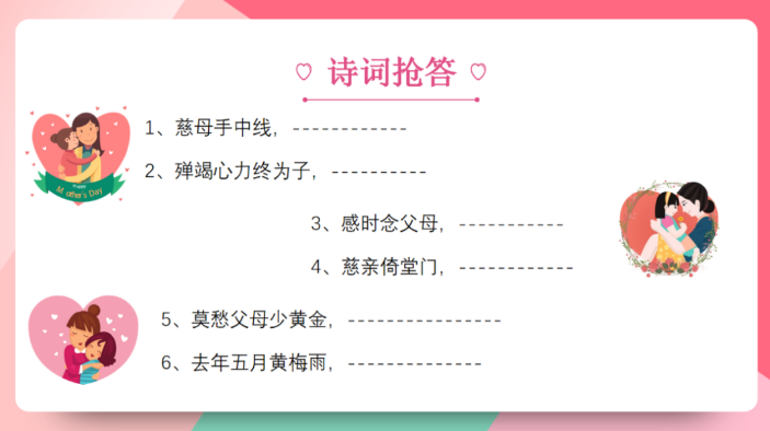 随后,开展了诗词抢答活动,通过分享有关母爱的诗词,感受浓浓的母子之情!