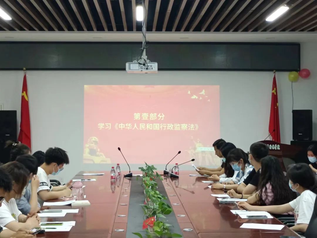 林园学院团委副书记、青年志愿者协会会长张思婷同学带领学生干部们共同学习了《中华人民共和国行政监察法》、《中国共产党纪律处分条例》、《中国共产党党内监督条例(试行)、》《建立健全教育、制度、监督并重的惩治和预防腐败体系实施纲要》四个文件,并在学习过后与在场的学生干部展开热烈讨论。