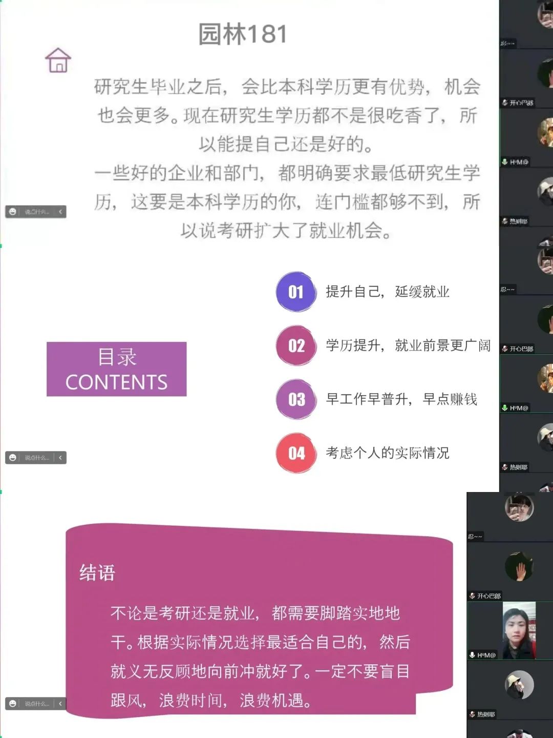 各班党员将自己在主题党日活动中的所学、所感、所悟整理成PPT,在各自班级召开分享会。活动过程中,支部党员悉心讲解师哥师姐们考研、考公、求职、就业的亲身经历,传达考试与求职中的经验,细致的讲述了简历与面试的技巧,分享师哥师姐对大家的寄语与期望。