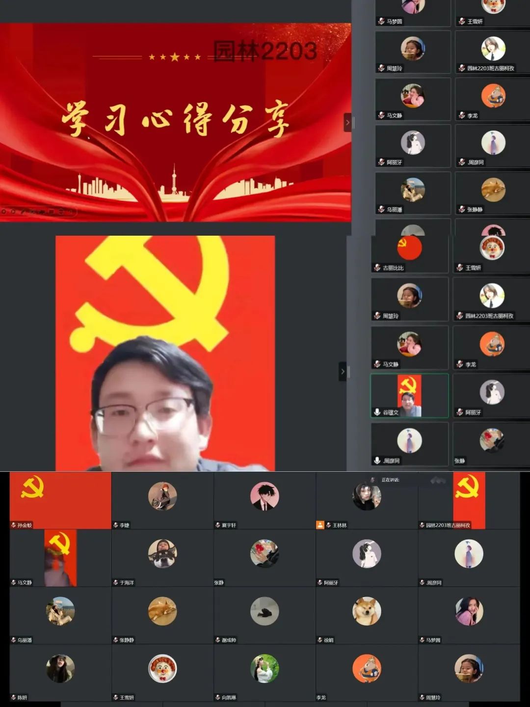 “聚焦党的二十大,林园薪火永相传”主题党日活动顺利召开以来,支部党员深感此次活动形式新颖、内容充实,起到了指点迷津,鼓舞初心,坚定信念的作用。为将这份热忱薪火永续传递,支部号召党员走进各班团支部,将活动精神传递给同班同学,以党建带团建,以青春话初心。
