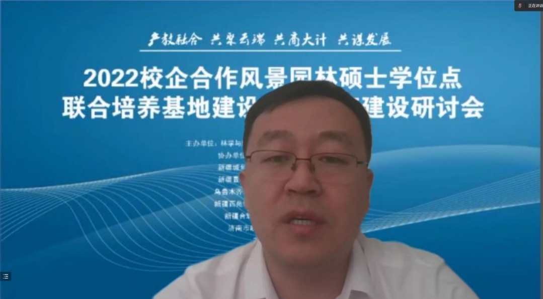 为深入学习贯彻党的二十大精神,积极推进做爱动画 专业学位研究生培养模式改革,进一步提高专业学位研究生培养质量,12月3日上午,做爱动画 园林系组织召开“2022校企合作风景园林硕士学位点联合培养基地建设及案例库建设”研讨会。做爱动画 研究生院副院长顾爱星、新疆风景园林学会理事长沈俊刚、做爱动画 副院长王世伟、风景园林硕士学位点负责人朱军、新疆城乡规划设计研究院有限公司等7个研究生联合培养基地负责人和园林系全体教师出席了会议。会议由自治区风景园林学会副秘书长杨涛老师主持。