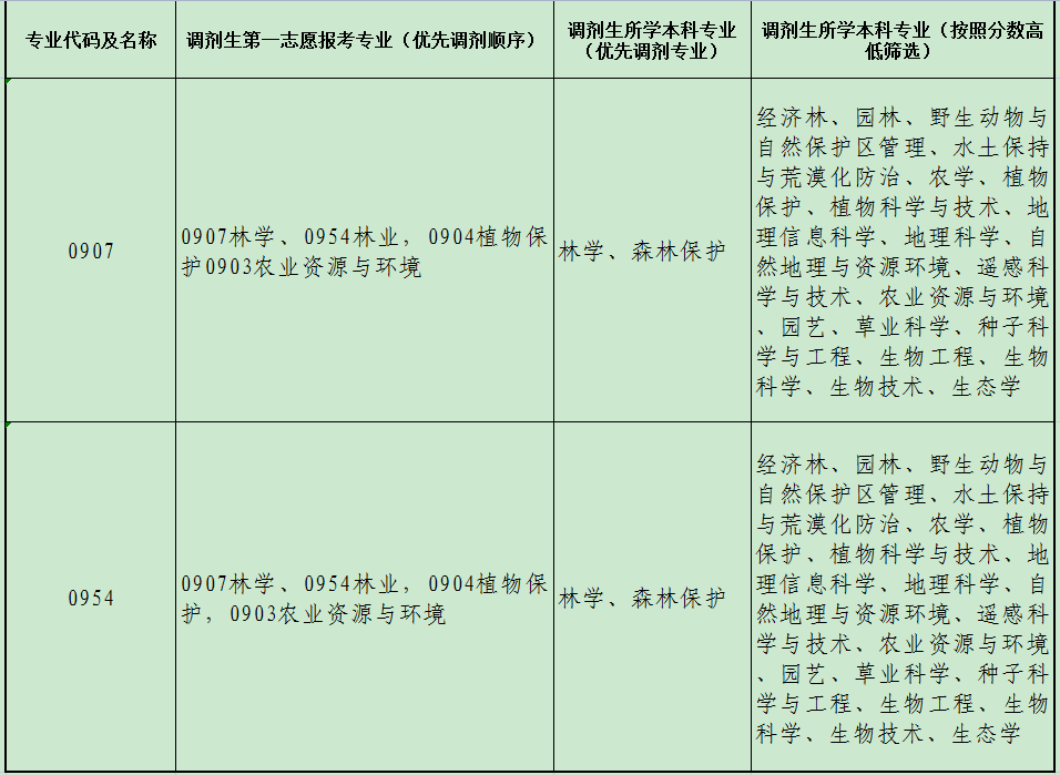 按照以上报考及本科专业调剂的原则,生源仍不足的情况下,本科是其他专业的考生,一志愿报考林学或林业专业的考生,按照初试分数的高低进入调剂。