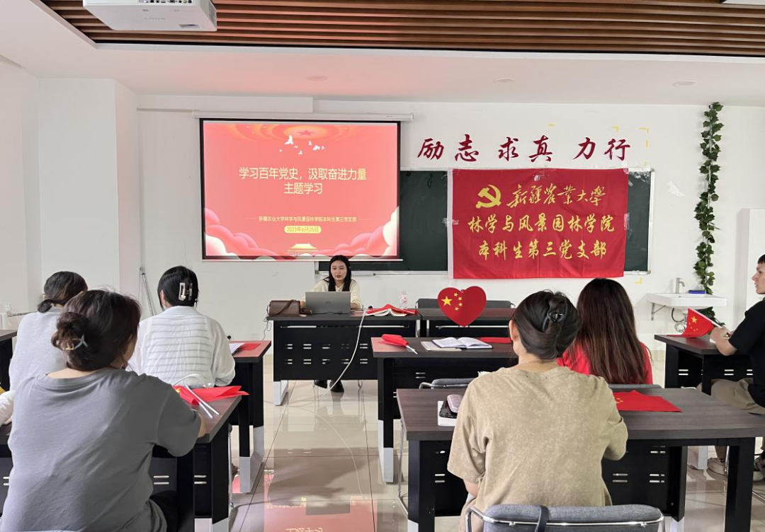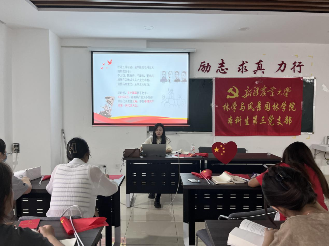 为进一步激发支部党员爱党爱国热情,庆祝中国共产党成立102周年,2023年6月25日,林园学院本科生三支部围绕学习贯彻习近平新时代中国特色社会主义思想,组织专题学习研讨,开展“学习百年党史,汲取奋进力量”主题党日活动。
