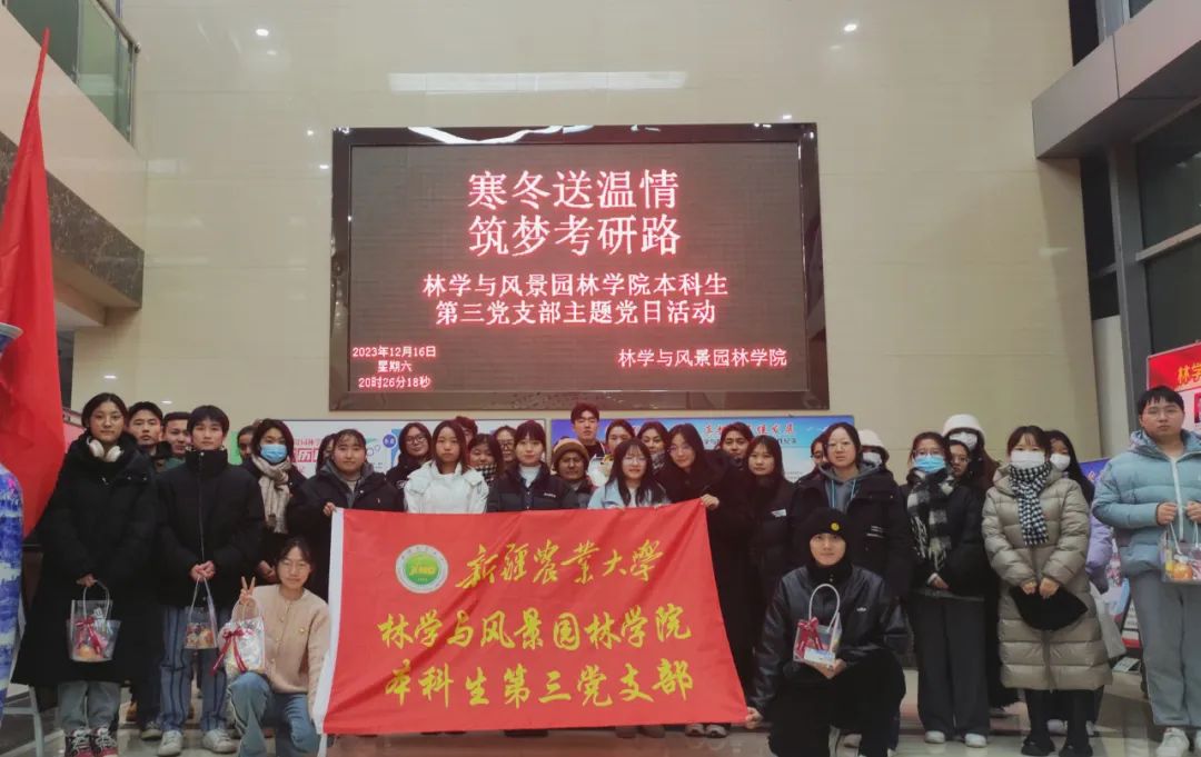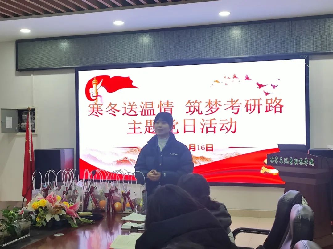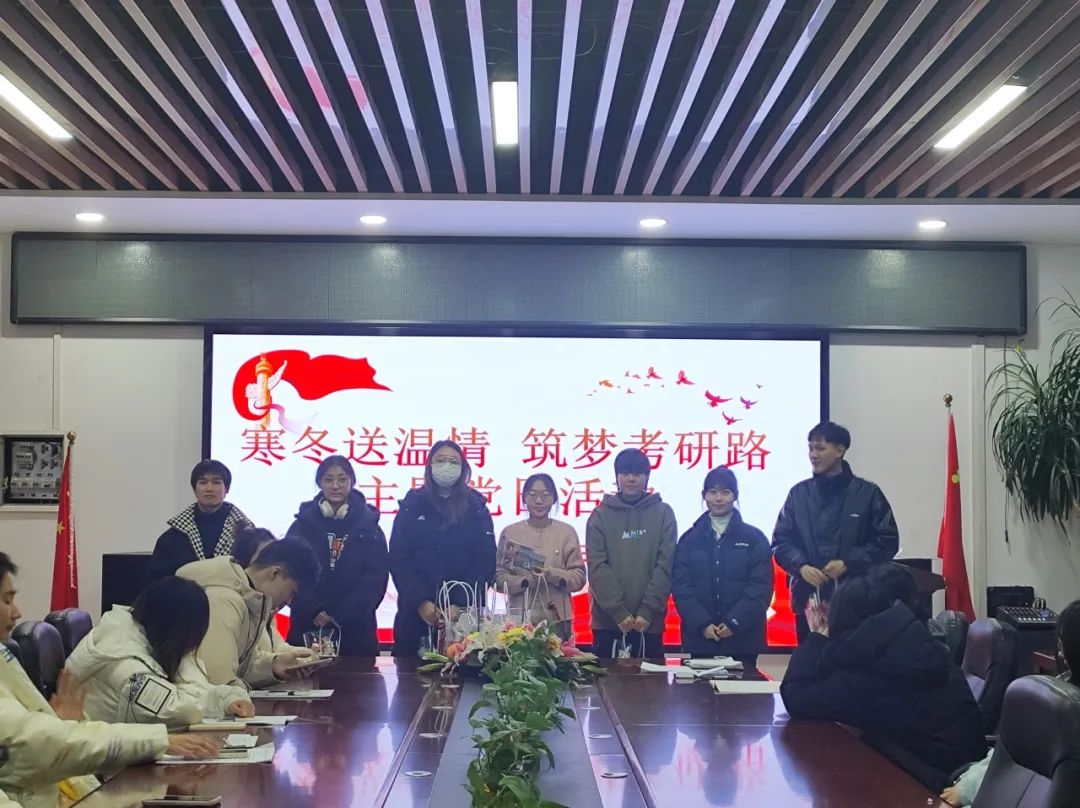 在2024年全国硕士研究生招生考试即将到来之际,为帮助党支部考研学子坚定信心、缓解压力,鼓舞考研士气,营造和谐温暖的学院氛围,传递温暖和力量,分享彼此的经验和心得,帮助大家更好地备战考研,2023年12月16日下午,做爱动画 本科生第三党支部在院党委支持下组织开展“寒冬送温情 筑梦考研路”主题党日活动。