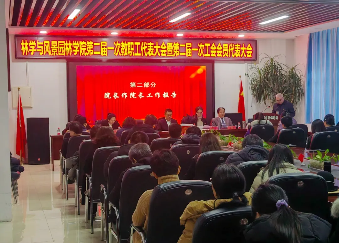 林园学院院长阿地力·沙塔尔向大会作了学院2023年工作报告,学院2023年财务工作报告,对学院2023年重点工作进行了全面客观的总结,分析了学院当前面临的新形势新任务,对2024年重点工作作出了安排部署。