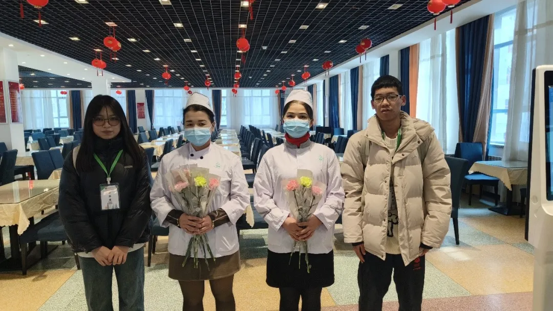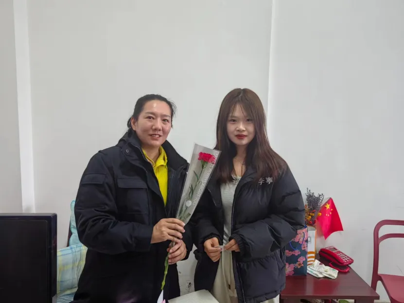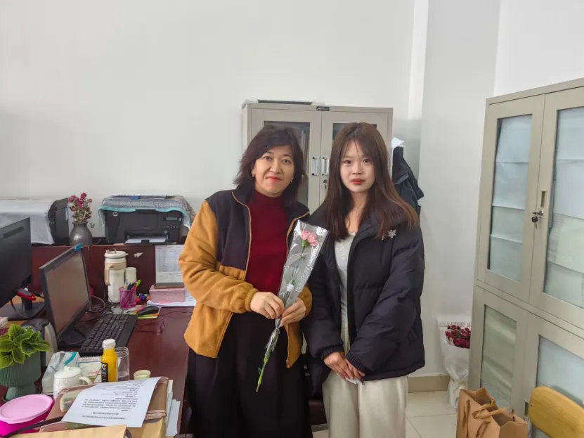 老师,您辛苦了!祝您女神节快乐!”学生们将手中的鲜花献给她们,用最真挚的话语,向女性老师们送上节日的祝福。教职工接过学生递来的鲜花,激动之情溢于言表:“谢谢你们!”