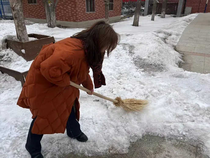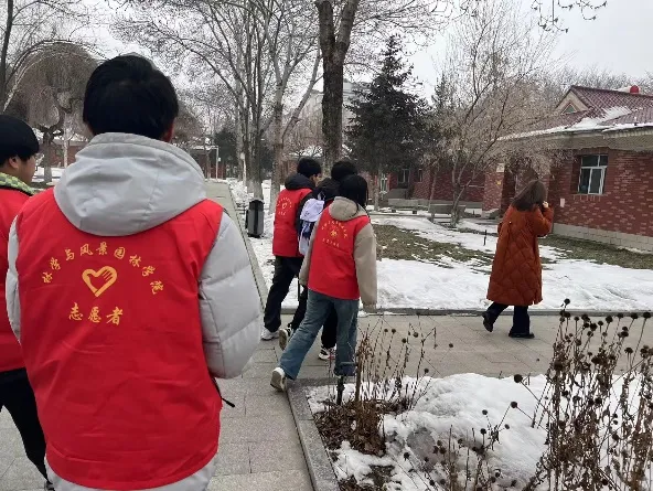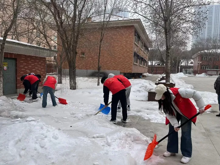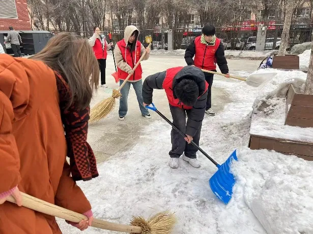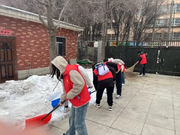 随后,组织开展了志愿服务清雪活动。志愿者们手持铁锹和扫帚,认真清理着儿童村内的积雪,为孩子们创造一个安全、整洁的环境。他们的身影在寒风中显得格外坚定和有力,展现了青年学生的奉献精神和担当精神。