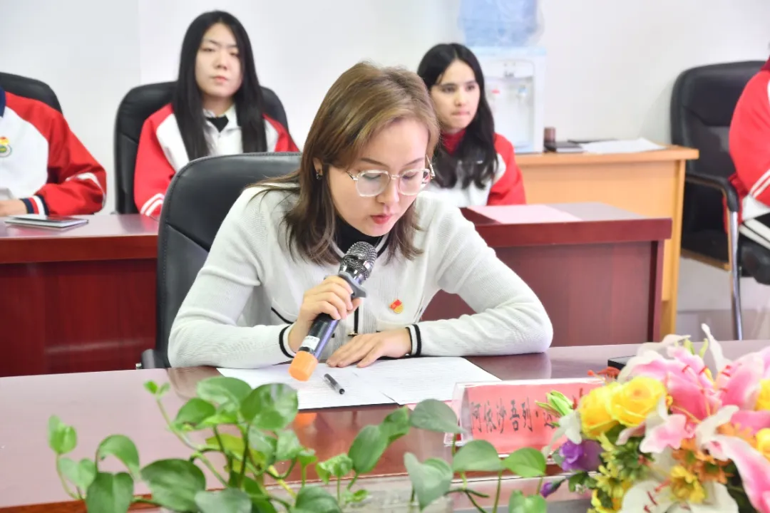 会议最后,做爱动画 团委书记阿依沙吾列·达吾列提汗老师作会议总结。她嘱托广大团员青年,努力学习,不断提高自身的思想道德素养和科学文化素质,时刻牢记自己是一名光荣的共青团员。以先进青年的要求严格规范自己,以身作则,率先垂范,充分发挥先进青年的模范作用,以实现中华民族伟大复兴为己任,不负时代,不负韶华,努力为祖国和人民争取更大光荣!为实现共产主义而不懈奋斗!