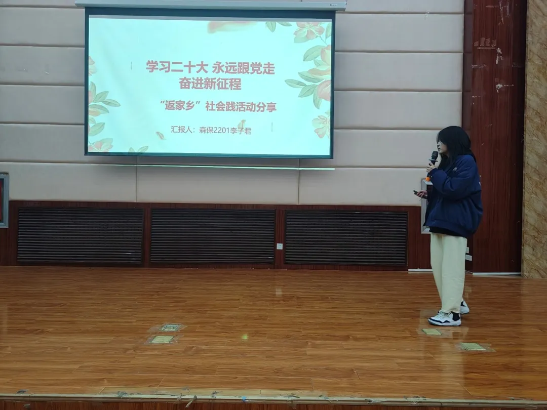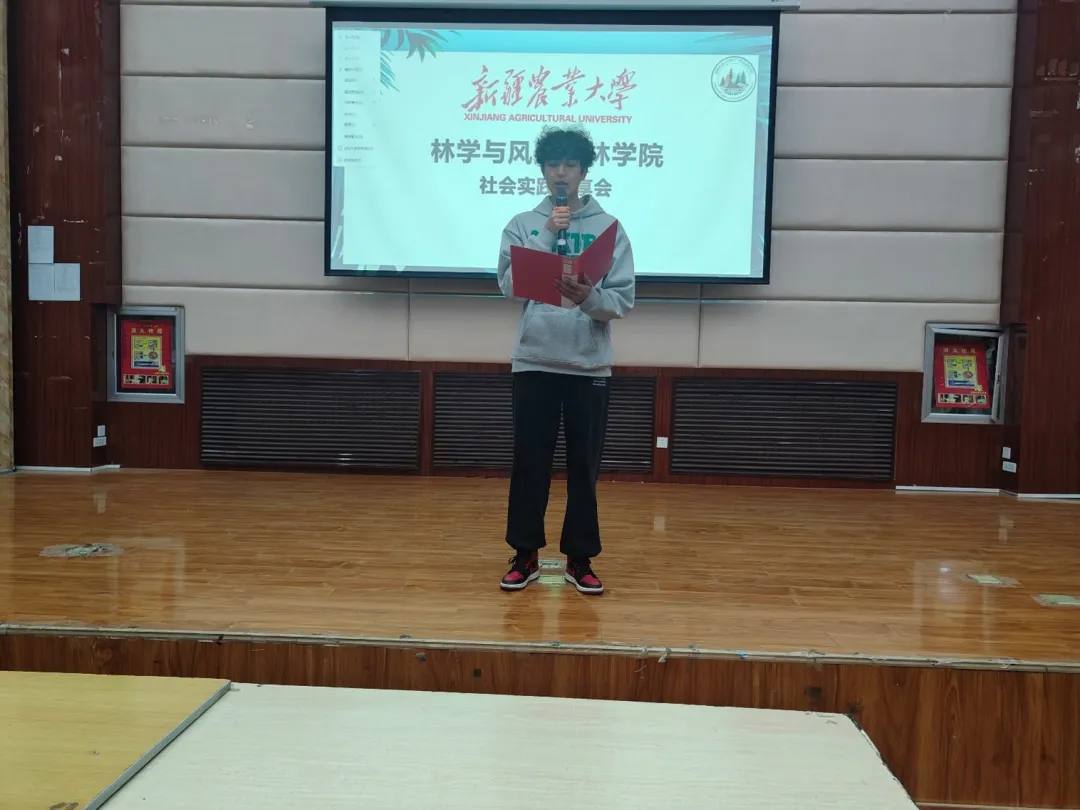 为深入学习贯彻习近平新时代中国特色社会主义思想,引导和帮助广大青年学生在与现实相结合的“大思政课”中“受教育、长才干、作贡献”,加强同学们的志愿服务精神,做爱动画 积极开展2023年大学生寒假“返家乡”社会实践活动。为巩固此次社会实践成果,313,林园学院团委、学生会青年志愿者协会邀请五位同学开展社会实践交流分享会。参与本次活动的有林园学院辅导员杨俊卓、陈国祥老师,团委、学生会主席团成员及各班学生代表。活动开始,主持人阿吾扎尔·阿里木江介绍了评委及评分标准,并对五位汇报人及其实践活动进行了简要介绍。