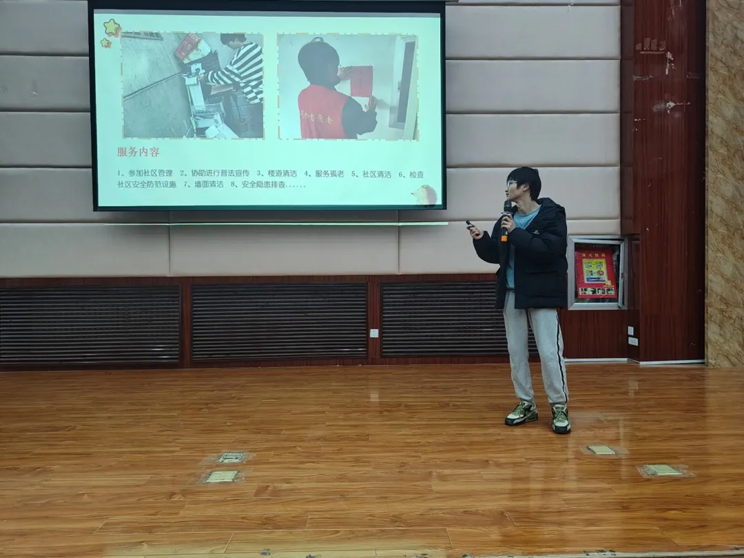 欧葆霖同学分享了他在基层社区服务的经历,在会上他这样讲到:劳动是中华民族的传统,而我们大学生作为新时代的传承者与发展者,更应弘扬劳动的美德,社区服务就是我们践行劳动价值的最好方式。