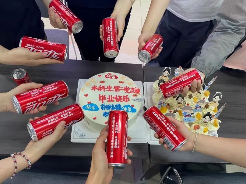 本次活动中,支部不仅为毕业党员们准备了精美的礼品,还定做了纪念感满满的蛋糕给大家。以表达对他们辛勤付出的感谢和对其未来发展的祝福。礼物虽小,但它承载着党支部全体成员对毕业党员的深情厚谊。