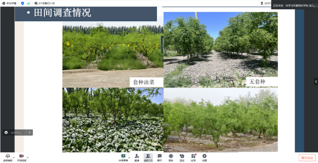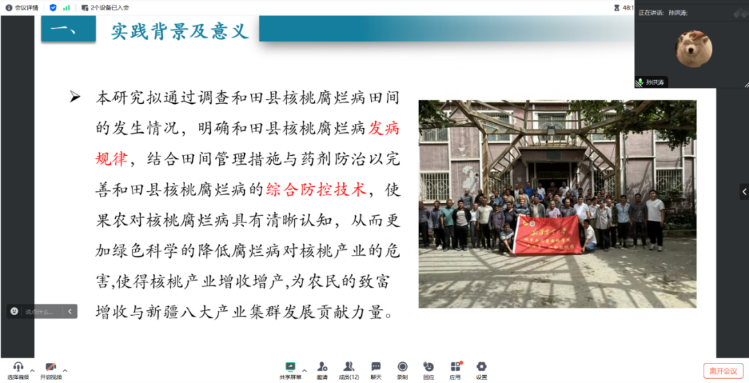 分享者采用线上展示的形式从目的与意义、实施过程、创新与不足、收获与感悟几个方面依次展开汇报,实践项目丰富多样且极具创新,涵盖了红色文化宣讲、基层工作实践、农业科技推广、农村生态环境调研、耕读教育等。