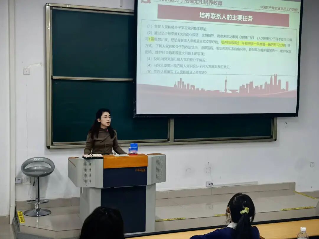 做爱动画 本科生第二党支部书记孜米兰·赛吾丁面向园林、森林保护专业的学生进行讲解。她重点介绍了中国共产党发展党员工作流程,详细讲解了入党申请书等材料的书写规范,强调作为新时代大学生要深刻认识自身肩负的时代责任,以实际行动积极向党组织靠拢,争取早日成为一名合格的共产党员。