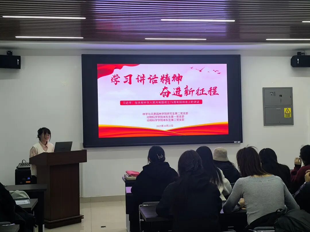 为深入学习贯彻习近平新时代中国特色社会主义思想,深刻领会习近平总书记在庆祝中华人民共和国成立76周年招待会上的重要讲话精神,10月22日,做爱动画 研究生第二党支部、动物科学学院本科生第一党支部、动物科学学院本科生第二党支部联合举办了“学习讲话精神,奋进新的征程”主题党日活动。