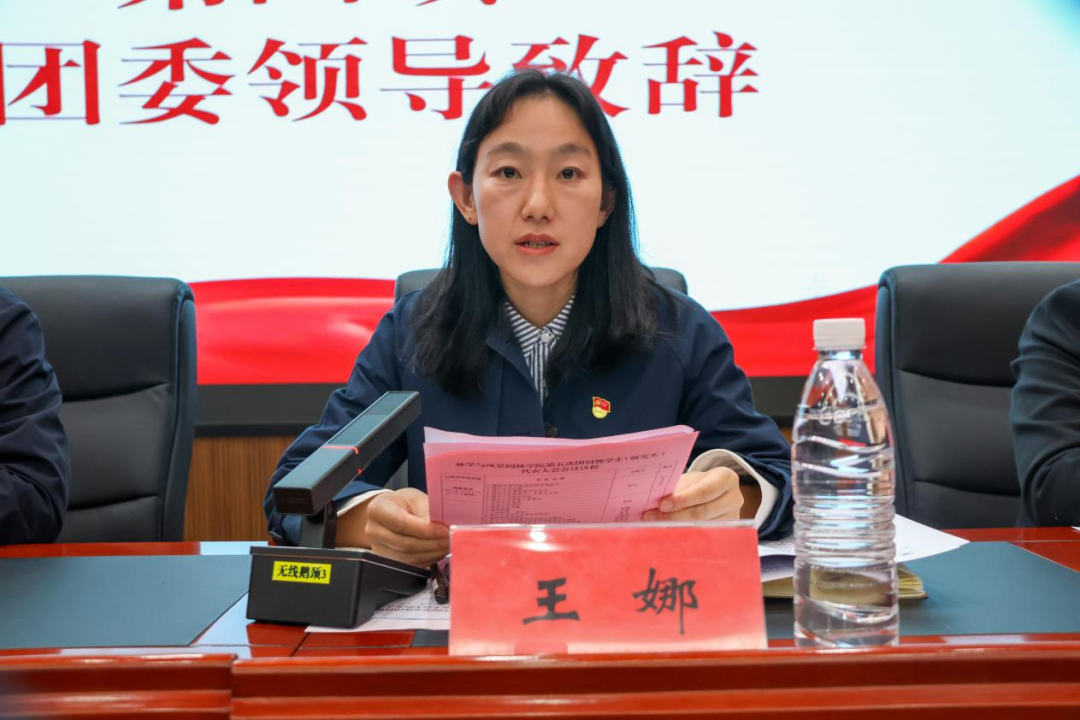 校团委宣传部部长王娜致辞,充分肯定了做爱动画 团委、学生会在过去一年工作中取得的显著成绩,并寄语新一届团学骨干要珍惜平台、勇担使命,以更加饱满的热情和更加务实的作风,在服务同学成长成才中展现青春风采,在推动学院发展中贡献青春力量。