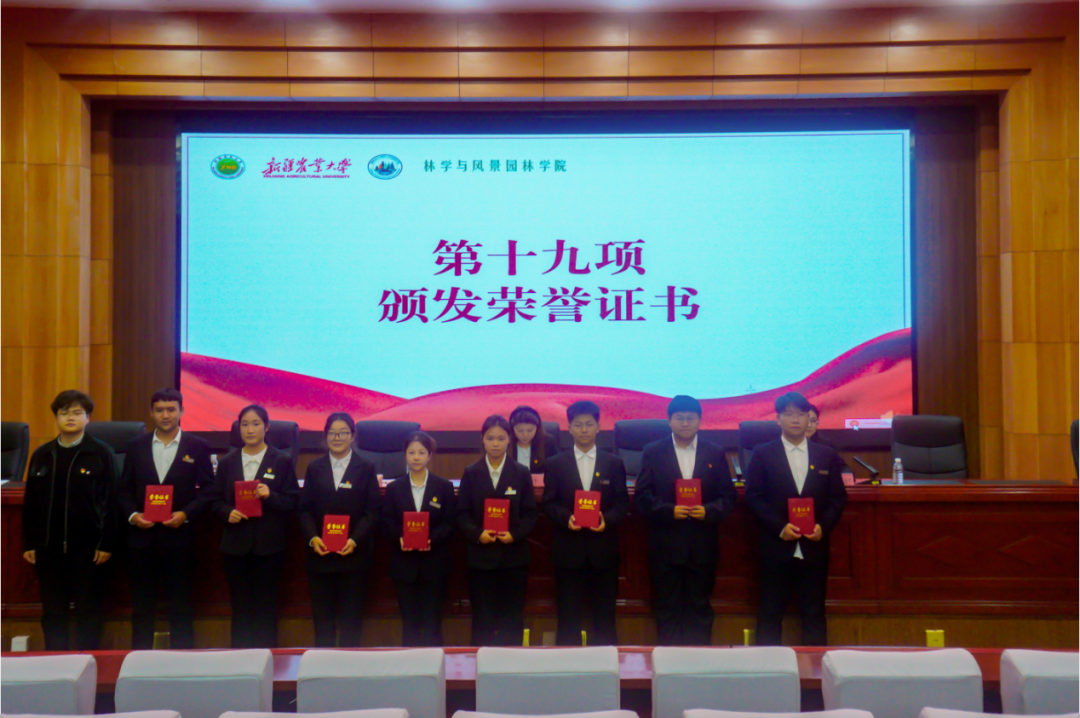 辅导员孜米兰·赛吾丁为第四届团委、学生会优秀志愿者颁发荣誉证书